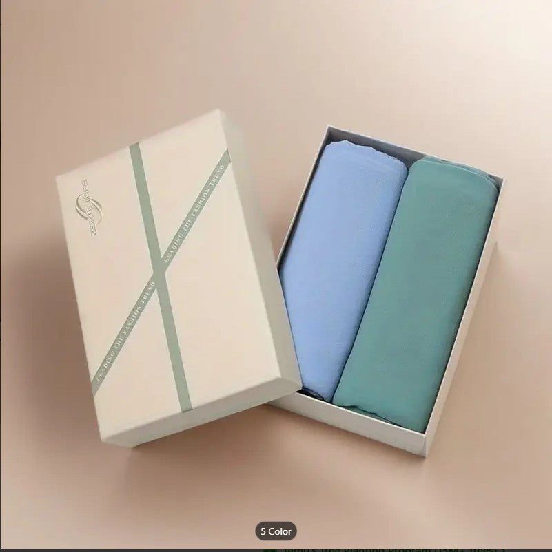 2 Bundle Denim Blue & Sage Luxury Chiffon Hijab for Women & Girls