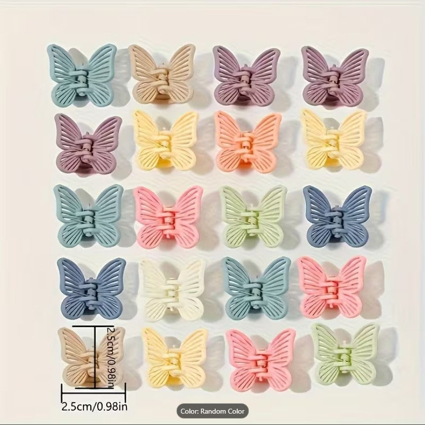 Butterfly Frosted Hair Clip for High Ponytail | Hollow-Out Plastic Macaron Butterfly & Square Claw Clip – Random Color Hairstyle Accessory