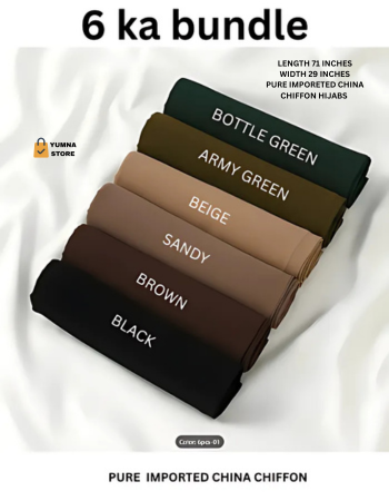 Set of 6 Hijabs Premium Chiffon Georgette Hijab, Stoller Set – Modest Muslim Wear for Girls & Women
